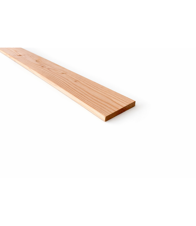 - Het geschaafde douglashout is teruggedroogd tot +/- 18 %, hierdoor zullen er veel minder scheurvormingen ontstaan.