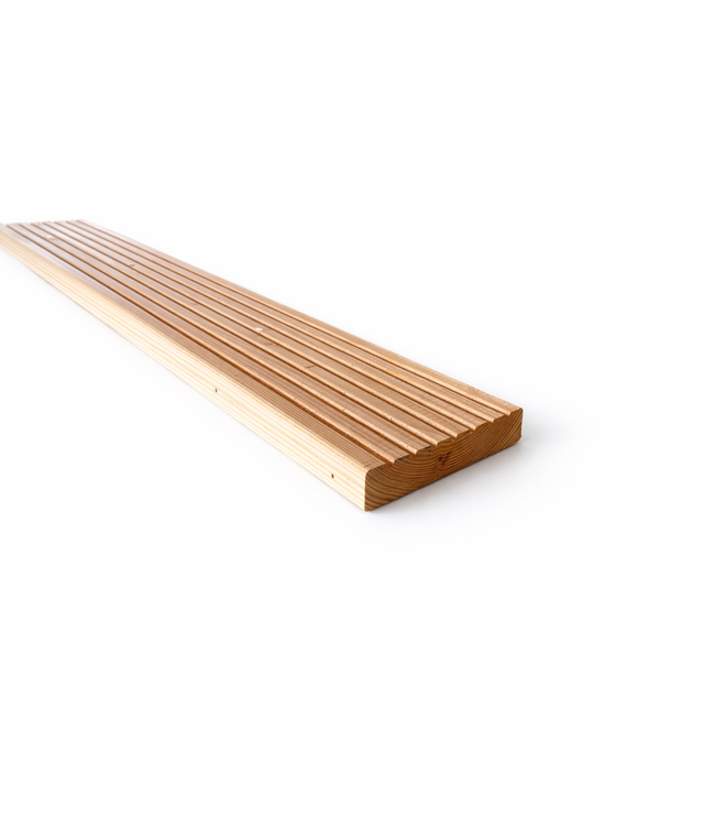 Met deze vlonderplanken/terrasdelen kunt u gemakkelijk en snel uw vlonder maken. Door de profilering van de plank hebben ze meer grip. Deze planken zijn al gedroogd, daardoor is de kwaliteit goed en werken ze bijna niet of helemaal niet.
