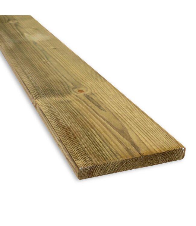 Schuttingplank geschaafd van Geïmpregneerd (gewolmaniseerd) grenen hout. Lees meer.
